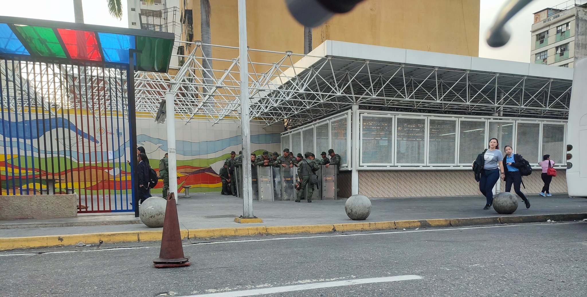 Desde tempranas horas de la mañana de este jueves, efectivos de la Guardia Nacional Bolivariana y uniformados de la Policía Nacional Bolivariana se desplegaron en diversos puntos de Caracas a pocas horas de la protesta convocada por sindicatos y estudiantes para exigir salarios justos.